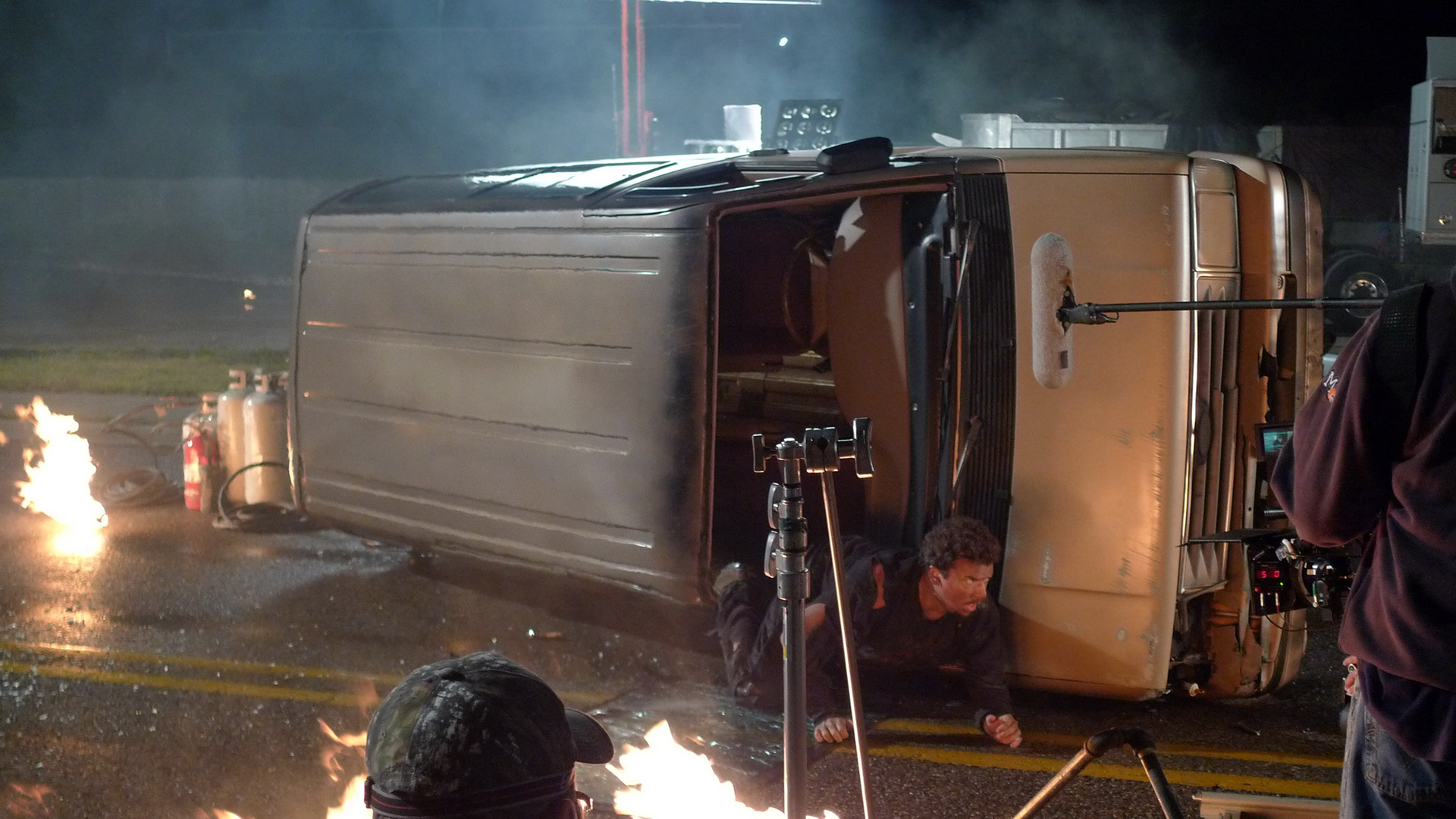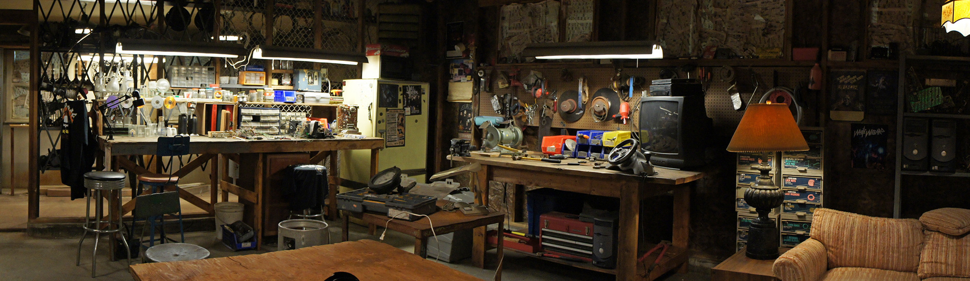 After choosing an appropriate house location a survey was done in order to recreate an interior garage set on stage.