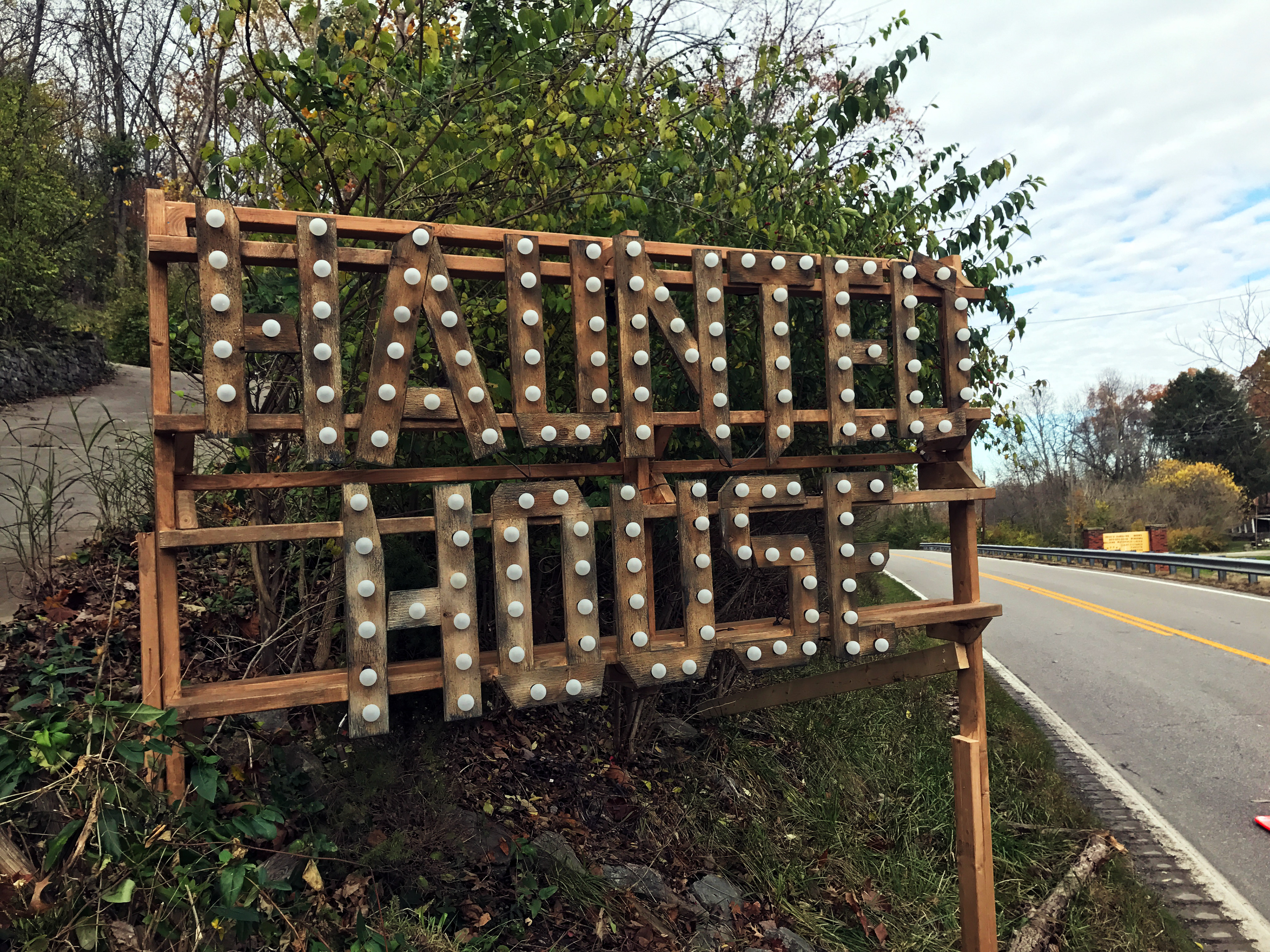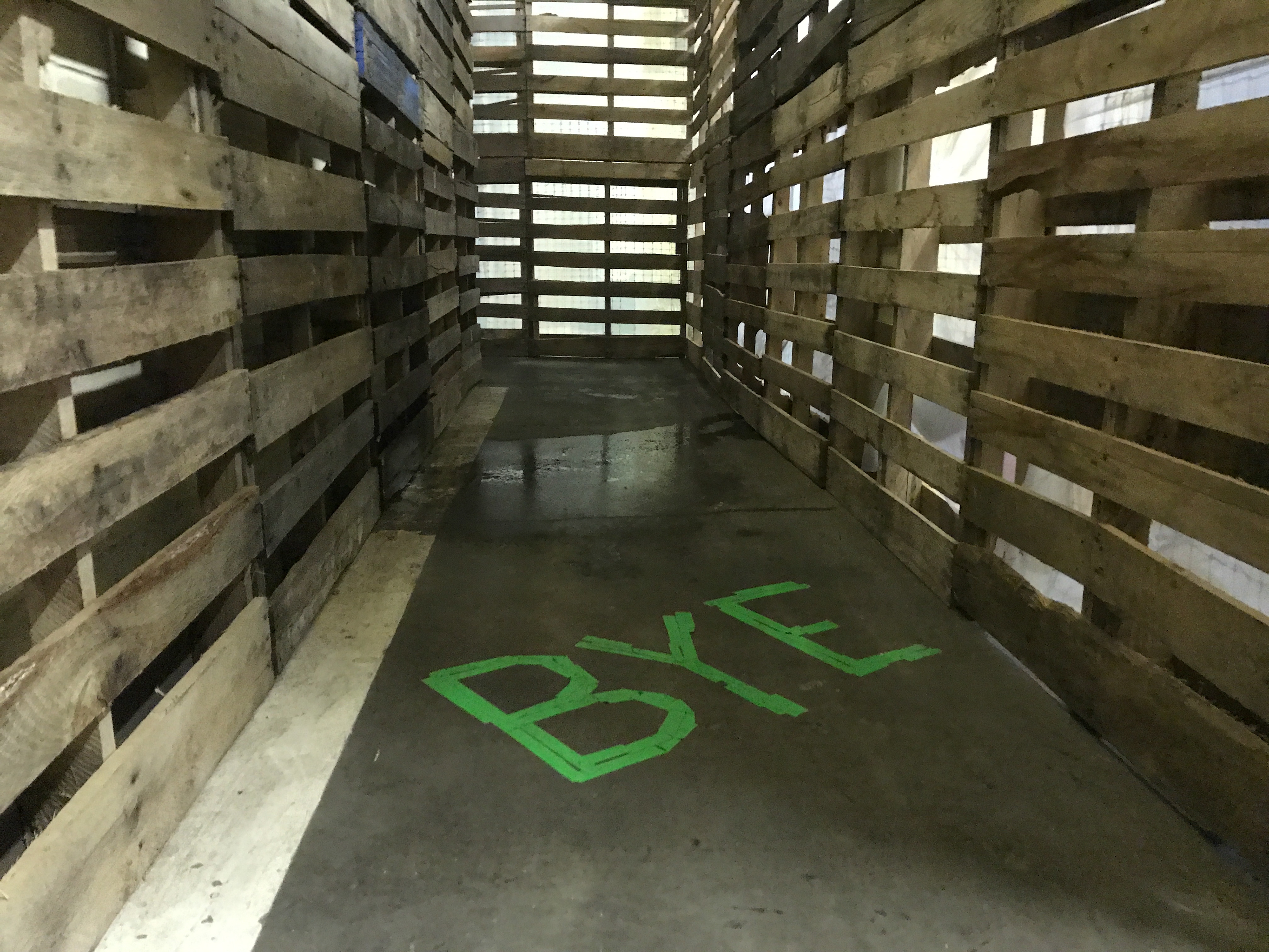 The script originally called for a neon sign which seemed inappropriate given the bricolage aesthetic of the haunt itself.